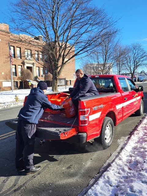 On Tuesday, Dec. 9, members of the Ludlow Fire Department delivered buckets of sand-and-salt mixture to residents’ homes.