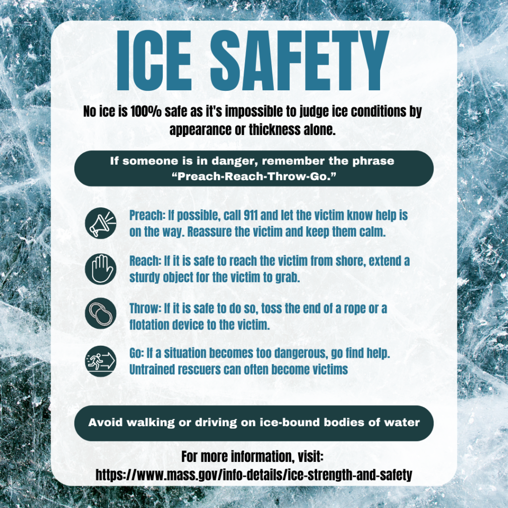 The department would like to remind residents of the dangers of ice during the winter, when ponds, lakes, and waterways freeze over.